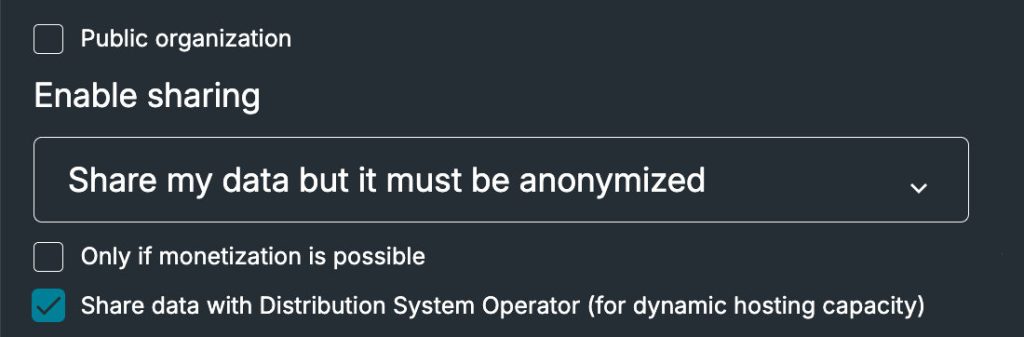 The fix for this situation is to be explicit with data ownership from the beginning. Like we do here at Ecosuite, we allow organization owners (org owners) to choose explicitly the nature of data access that any third parties might be allowed, with respect to their own data (Ecosuite is a mere custodian of the org owner’s data and the org owner is in control of who else might have access to this data and under what terms). Some examples of options currently available are shown below. These options quickly give an understanding of the fine grained control that an org owner has over their data: